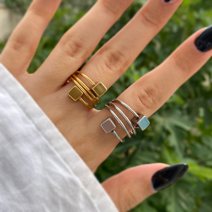 انگشتر استیل دو مکعب طلایی و نقره ای؛ ترکیب هنر و جسارت برای دستانی که جسورانه میدرخشند