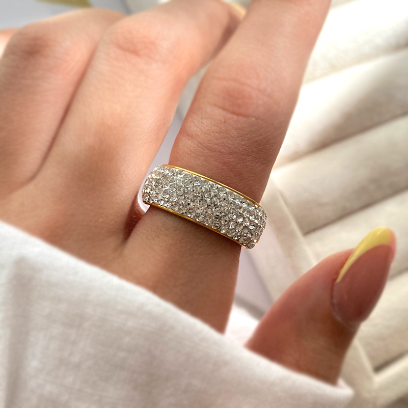 انگشتر استیل طلایی تمام نگین. جلوهای شیک و لوکس برای مناسبتها