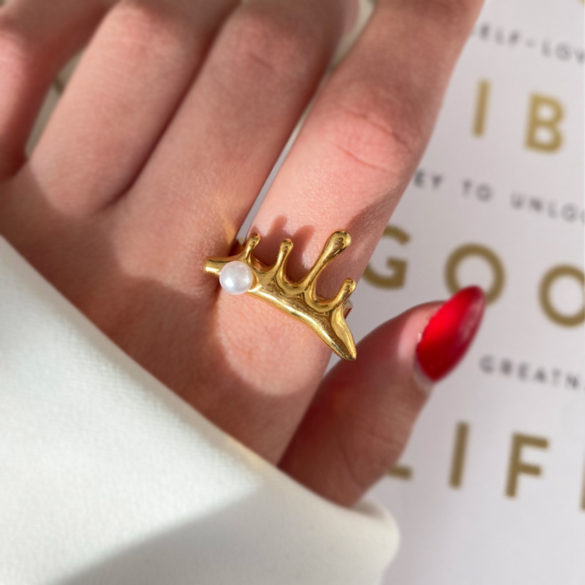 طراحی قطرهمانند شمع با مروارید تک؛ تلفیق گرمی طلایی و لطافت مروارید برای استایل هنری