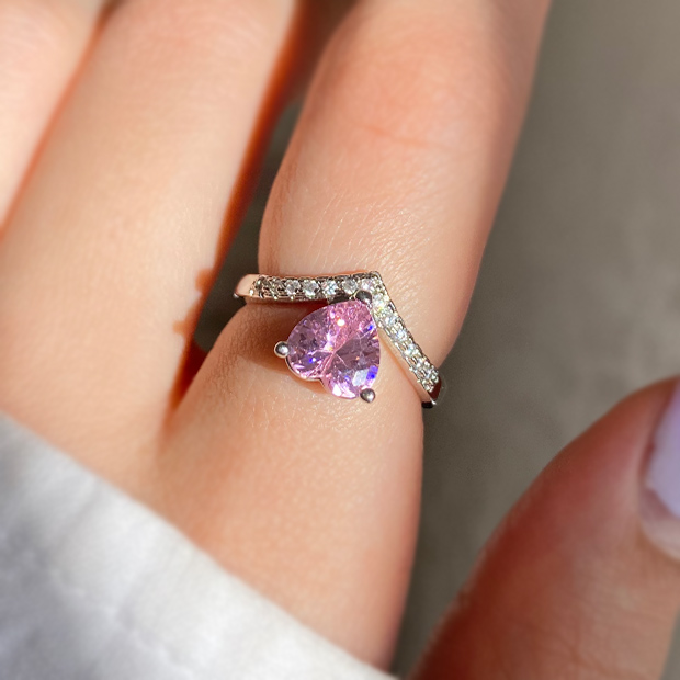 انگشتر قلب صورتی ظریف با نگین براق؛ طراحی رمانتیک و دخترانه برای هدیه یا استایل روزمره