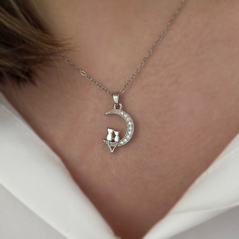 گردنبند ماه‌ پیشی نقره ای نگینی