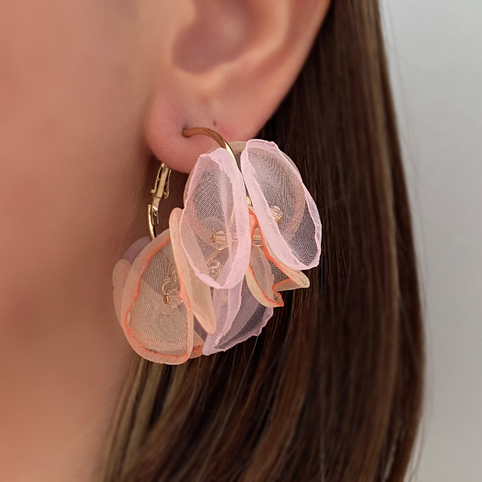 گوشواره بلند با گلهای حریری لطیف. برای استایلهای روستیک، دخترانه و خاص.