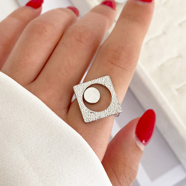 انگشتر مربع دایره نقره ای استیل